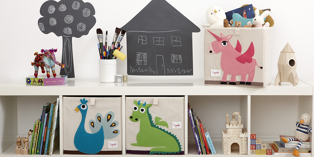 Para a organização do local, os cestos organizadores com estampas animadas é ótimo para decorar o quarto, além de poder formar nichos bem charmosos.